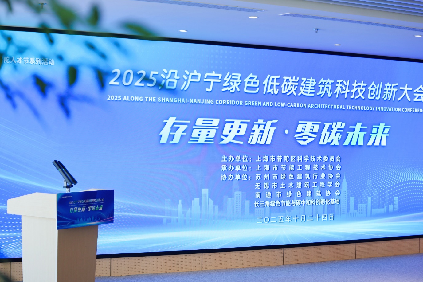2025年10月24日,“2025沿沪宁绿色低碳建筑科技创新大会”在上海市普陀区信泰中心(大渡河路1428号T1栋43层)盛大召开。本次大会由上海市普陀区科学技术委员会主办,上海市节能工程技术协会承办,南通市绿色建筑协会协办,南通职业大学作为南通绿色建筑协会副理事长单位参加了此次会议。会议以“存量更新・零碳未来”为主题,旨在推动沿沪宁产业创新带相关城区在城市更新、建筑绿色低碳改造领域的科技创新与成果转化。