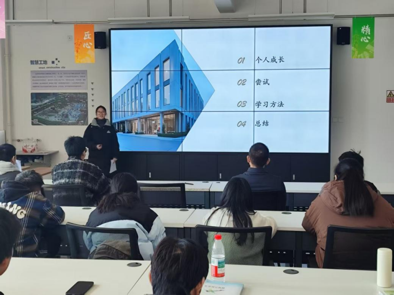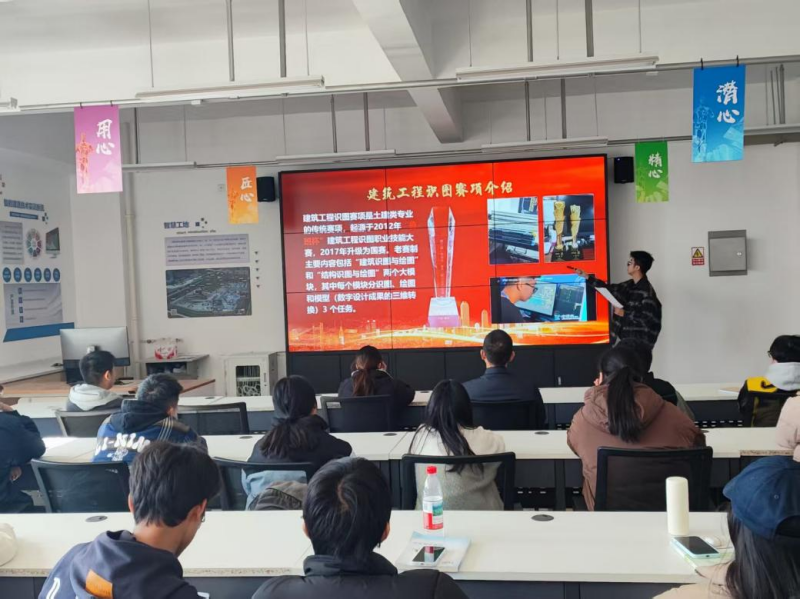造价234班易翰同学则将目光投向了技能竞赛的舞台。他回顾了自己从日复一日的刻苦训练,到赛场上的沉着应对,并最终在世界技能大赛中斩获金奖的艰辛与荣耀。易翰同学用他的经历诠释了“工匠精神”的内涵,展现了智能建造学子精湛的专业技能和追求卓越的意志品质。