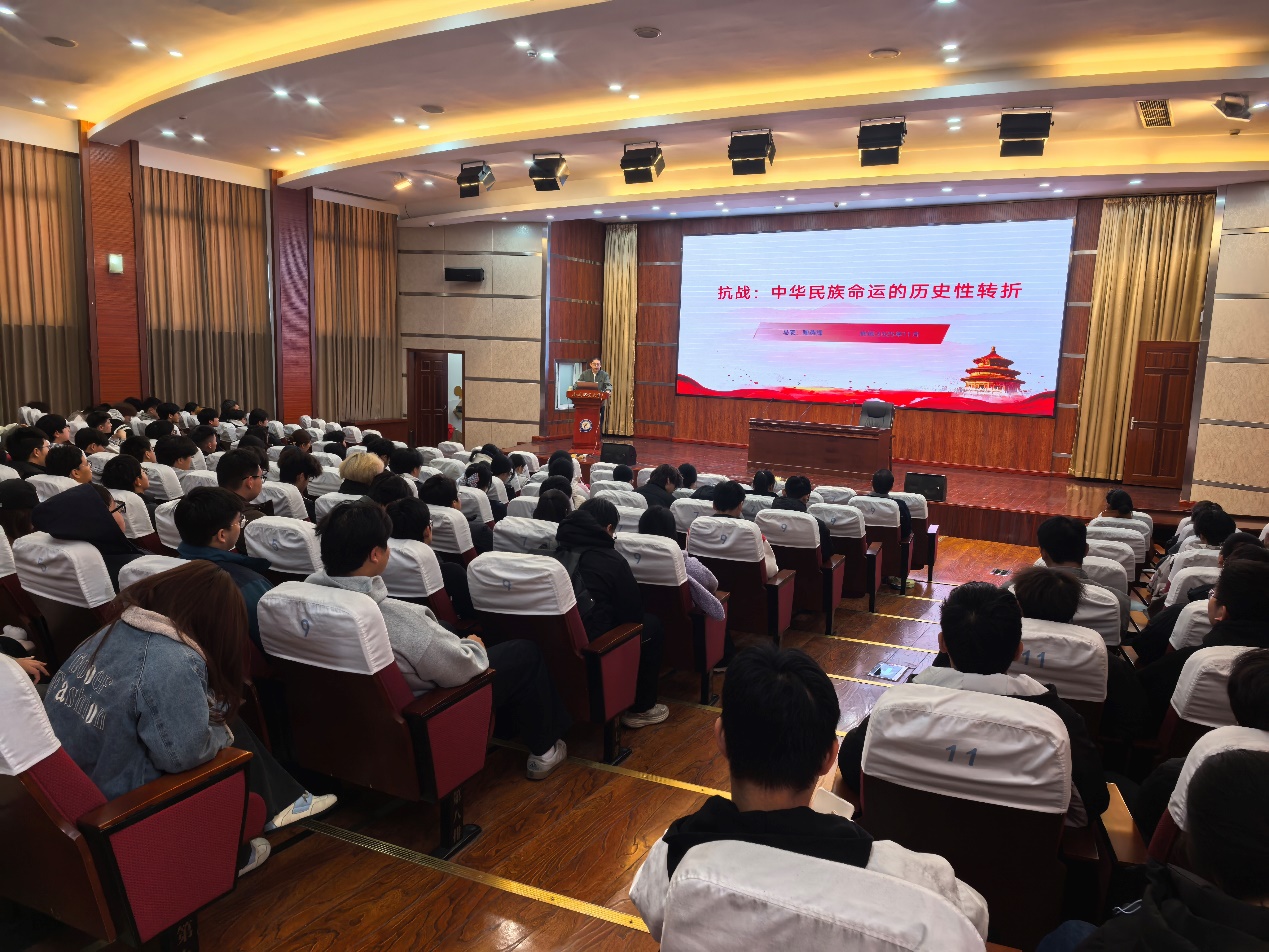 在纪念中国人民抗日战争暨世界反法西斯战争胜利80周年之际,鲁班讲堂——《抗战:中华民族命运的历史性转折》的主题讲座于2025年11月26日在图书馆报告厅举办。这场由智能建造学院关工委、教工第一党支部联合承办的活动,不仅是一次历史的回望,更成为激发青年担当的时代强音。讲座由智能建造学院党总支教工第一支部书记、关工委成员朱燕老师主持,特邀校关工委宣讲员、马克思主义学院教师陶燕辉老师担任主讲,学院师生代表180余人到场聆听。