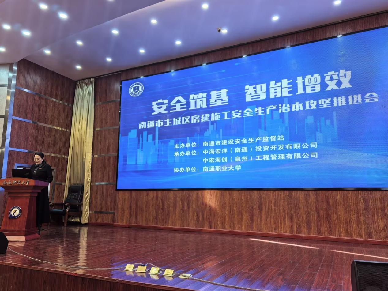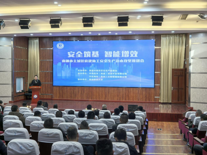为进一步落实《省安委会<关于推进安全生产“六化”建设的实施方案(试行)>的通知》《南通市住房和城乡建设局<关于印发南通市住房城乡建设领域安全生产治本攻坚三年行动方案(2024-2026年)>的通知》等文件精神,进一步夯实冬季施工现场安全管理,提升智慧创安工作成效,从根本上消除事故隐患,有效防范遏制各类生产安全事故的发生,11月28日下午,“安全筑基 智能增效”南通市主城区房建施工安全生产治本攻坚推进会在我校举办,此会议由南通市建设安全生产监督站主办,中海宏洋(南通)投资开发有限公司、中宏海创(泉州)工程管理有限公司承办,南通职业大学协办。