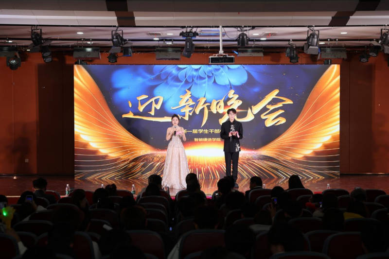 2025年12月16日晚,智能建造学院关工委、学生党支部、团总支、学生会举办的迎新晚会暨新一届学生干部任职大会在梦想剧场隆重举行。学院分管领导五级职员赵峰、学院党政班子成员与师生代表共200余人欢聚一堂,共同见证这场融合艺术风采与责任传承的盛会。晚会通过歌曲、舞蹈、魔术、朗诵等精彩节目,展现了智能建造学子的青春活力,大会同步完成新一届学生干部任命。