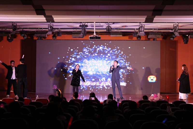 晚会尾声,徐星星老师以一曲《大海》温暖收官,其悠扬旋律与师生互动灯光秀交织成动人画卷;李佳铭老师、徐星星老师和同学们共同带来的歌曲串烧将气氛推向高潮,师生同台共唱的场景彰显了智能建造学院“亦师亦友、教学相长”的育人文化。