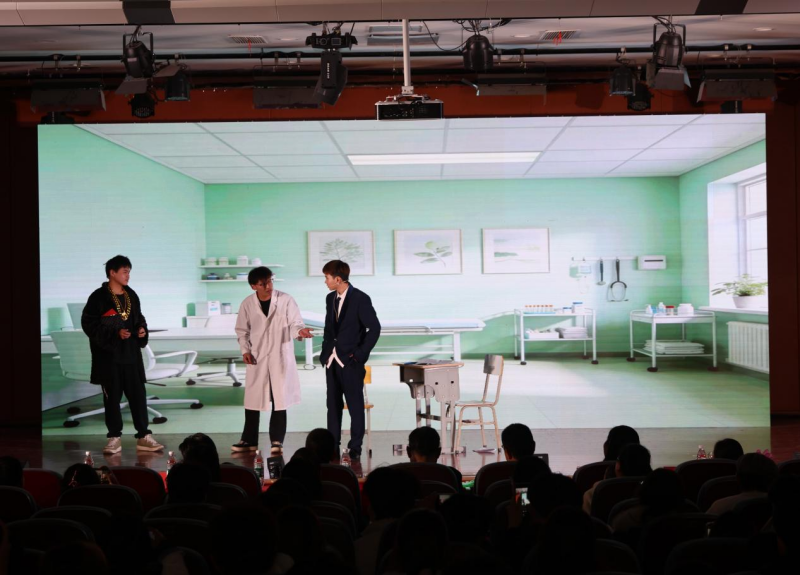 此外,魔术表演以精妙手法与互动设计令人惊叹连连;舞蹈《三拜红尘凉》以柔美身姿与情感张力展现东方美学韵味;小品《看病》通过诙谐情节与生动表演,幽默演绎日常生活中的温情故事,传递人文关怀;朗诵《跨越百年的承诺》由姚明超、龚俊宇等同学领诵,声情并茂地诉说代际传承的使命与担当,引发全场掌声雷动。