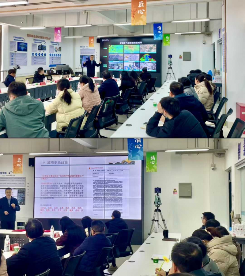 第二阶段是专题分享。袁大伟总经理《以时空智能测绘的探索与实践》和《城市更新与智能建造发展和人才培养探索》为题,深入剖析了行业发展趋势及对人才能力提出的新要求;任大勇总监作《数智赋能,赛教协同背景下校企合作的南方实践》报告,分享了企业通过技术赋能教育、以赛促教推动教学改革的成功经验和实践路径,并开展《元宇宙智能实训系统功能展示》,通过生动演示,呈现虚拟仿真、数字孪生等技术在测绘与建造教学实训中的创新应用。