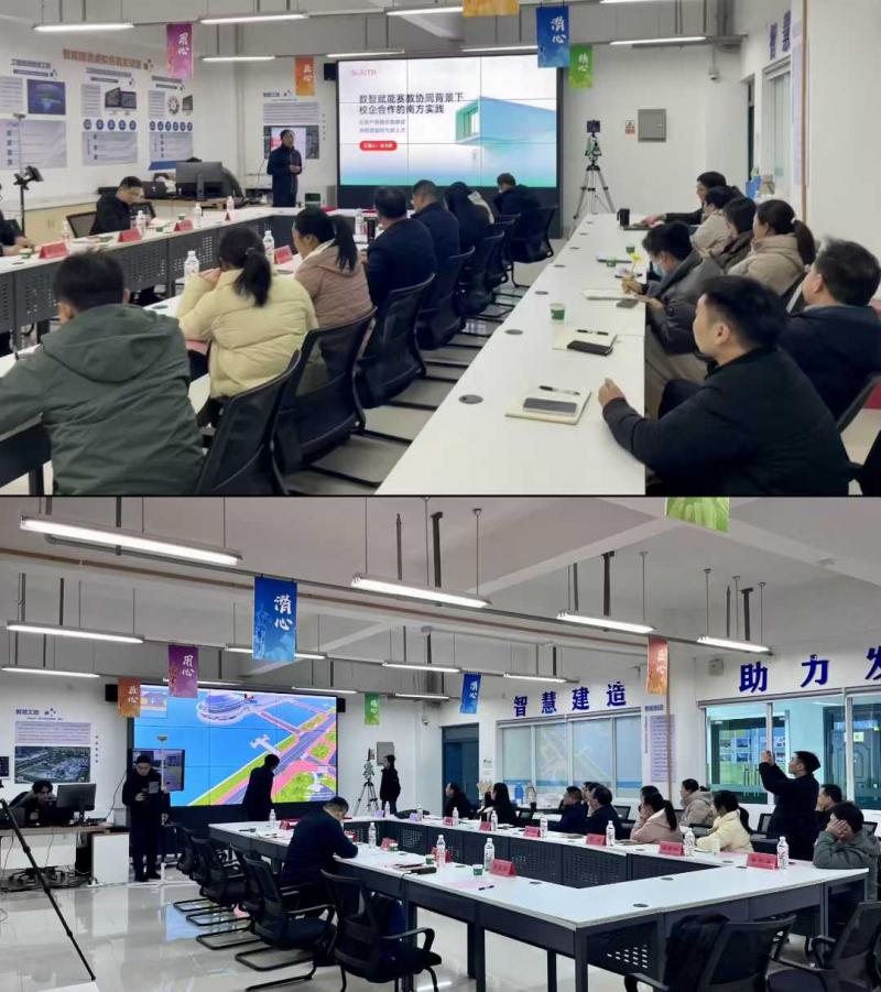 最后,座谈交流环节。双方围绕智能建造专业群建设、课程体系开发、虚拟仿真实训基地共建、师资培养、学生技能大赛等关键议题展开热烈研讨。校企双方表示将一步依托南方测绘在元宇宙、数字孪生、智能建造等领域的技术优势,紧密结合学院的专业特色与人才培养目标,在课程资源开发、实践教学体系构建、产学研合作等方面开展实质性合作,共同助力学院人才培养质量提升。