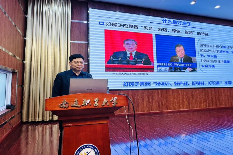 在2026年两会明确提出“有序推动安全舒适绿色智慧的‘好房子’建设”的时代背景下,在南通加快推进城市建设高质量发展、打造宜居宜业幸福城市的关键时期,3月26日第三期南通市土木建筑大讲坛在南通职业大学成功举办。来自南通市土木建筑学会18个专委会及各会员单位的200余名会员参加。本次讲坛邀请中国工程院院士刘加平教授开讲,会议由南通职业大学党委副书记、校长方季红主持。