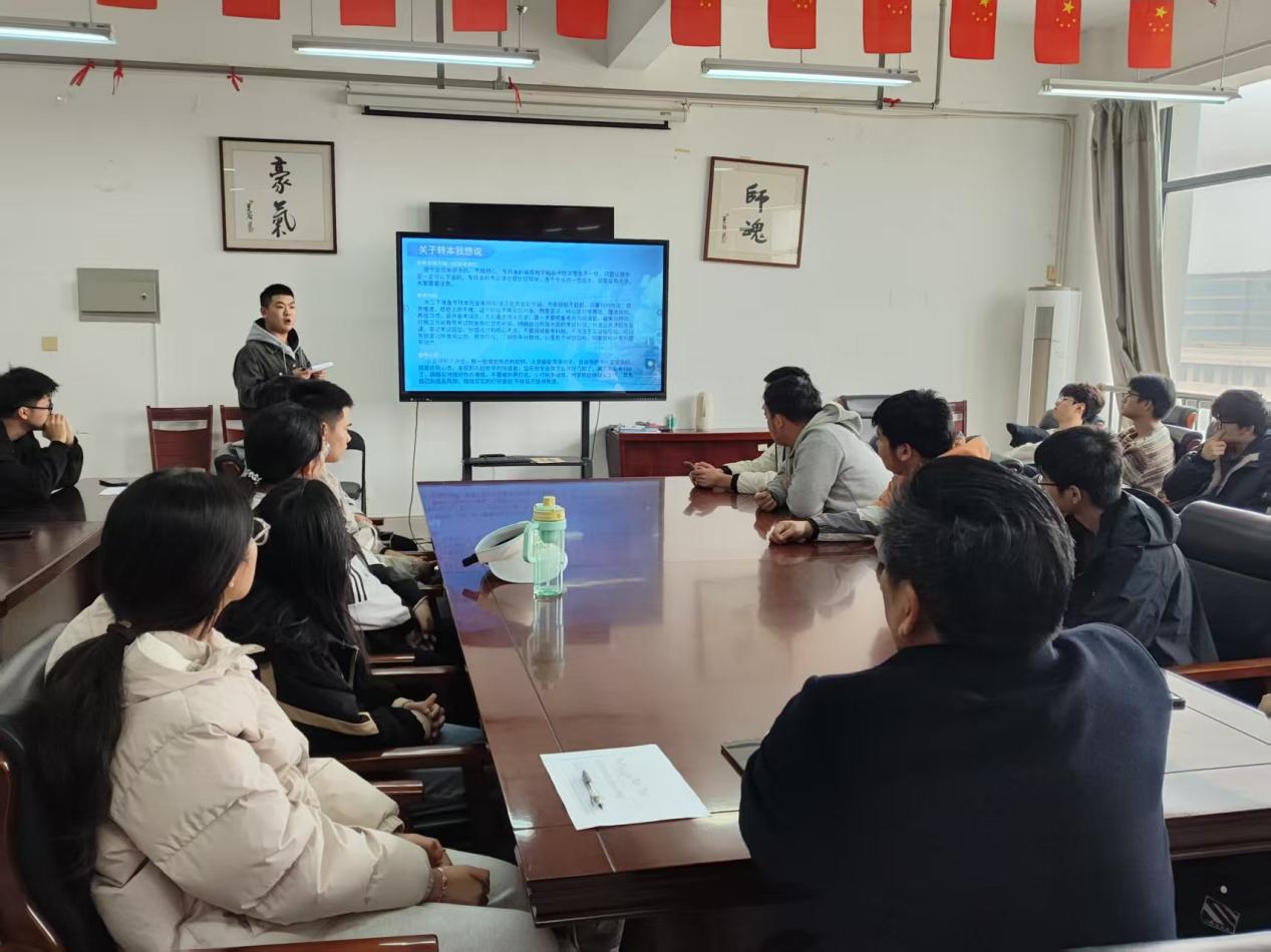 随后,国家奖学金获得者孙世航围绕专业实践、论文写作与发表、专利申请以及专转本备考经验等内容,进行了系统且实用的讲解。他以自身奋斗历程为例,鼓励同学们在专业学习之余积极拓展实践能力和科研素养,不断提升综合素质。